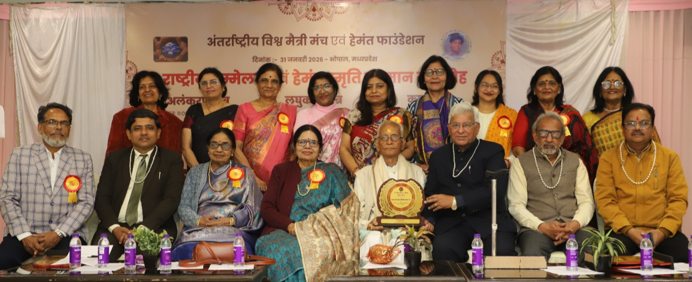 अंतर्राष्ट्रीय विश्व मैत्री मंच का १२ वां राष्ट्रीय सम्मेलन एवं २५वां हेमंत स्मृति कविता सम्मान समारोह शनिवार को भोपाल के ला पर्ल होटल में आयोजित किया गया। इसमें ३ सत्रों में बहुमुखी प्रतिभावान साहित्यकार पुरस्कृत किए गए।