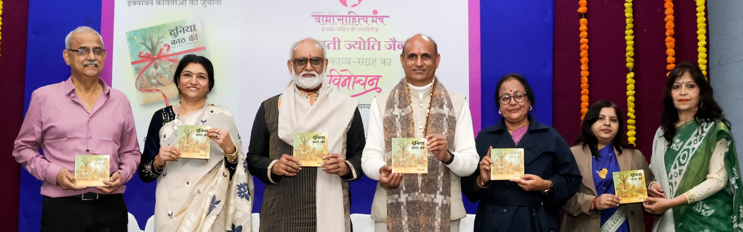 मुख्य अतिथि डॉ. सच्चिदानंद जोशी (सदस्य सचिव, इंदिरा गांधी राष्ट्रीय कला केंद्र, दिल्ली) ने यह बात ‘वामा साहित्य मंच’ की अध्यक्ष एवं लेखिका ज्योति जैन के काव्य संग्रह ‘दुनिया काठ की’ (१७वीं पुस्तक) का जाल सभागृह (इंदौर) में विमोचन करते हुए कही। मीडिया प्रभारी सपना साहू ‘स्वप्निल’ ने बताया कि आपने लेखिका की रचनाएं ‘चौखट’, ‘बच्चों की लकड़ी’, ‘ओखली’ आदि से प्रस्तुत बिम्ब की प्रशंसा भी की।
