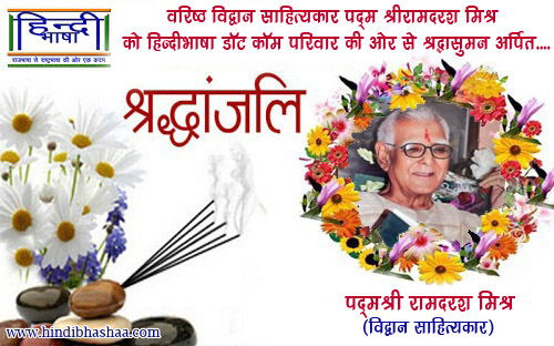 हिंदी के प्रख्यात साहित्यकार एवं पद्मश्री प्रो. रामदरश मिश्र का निधन हो गया है। वे बीमार चल रहे थे और द्वारका स्थित अपने बेटे के घर पर थे। निधन पर अंर्क संस्थाओं और लेखकों ने गहरा शोक व्यक्त करते हुए श्रद्धांजलि अर्पित की है।